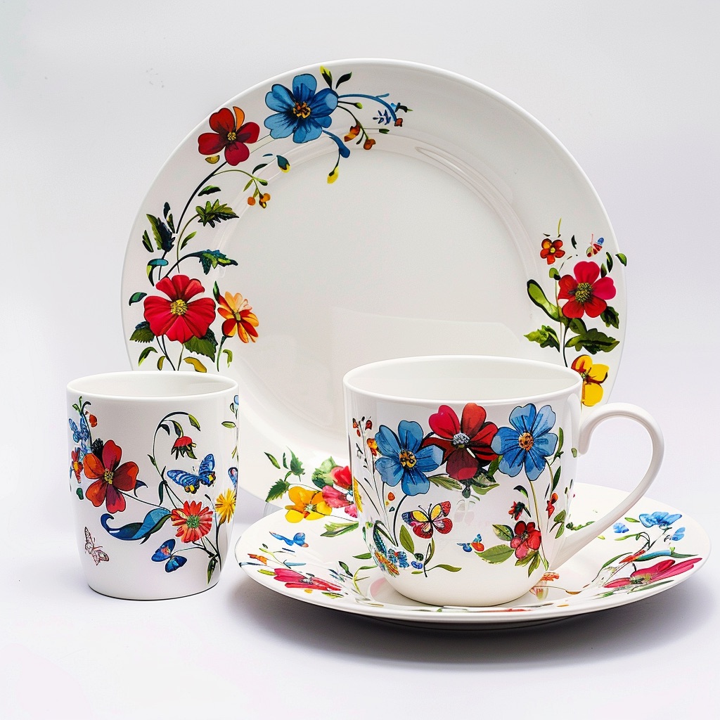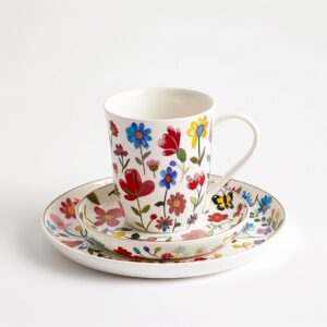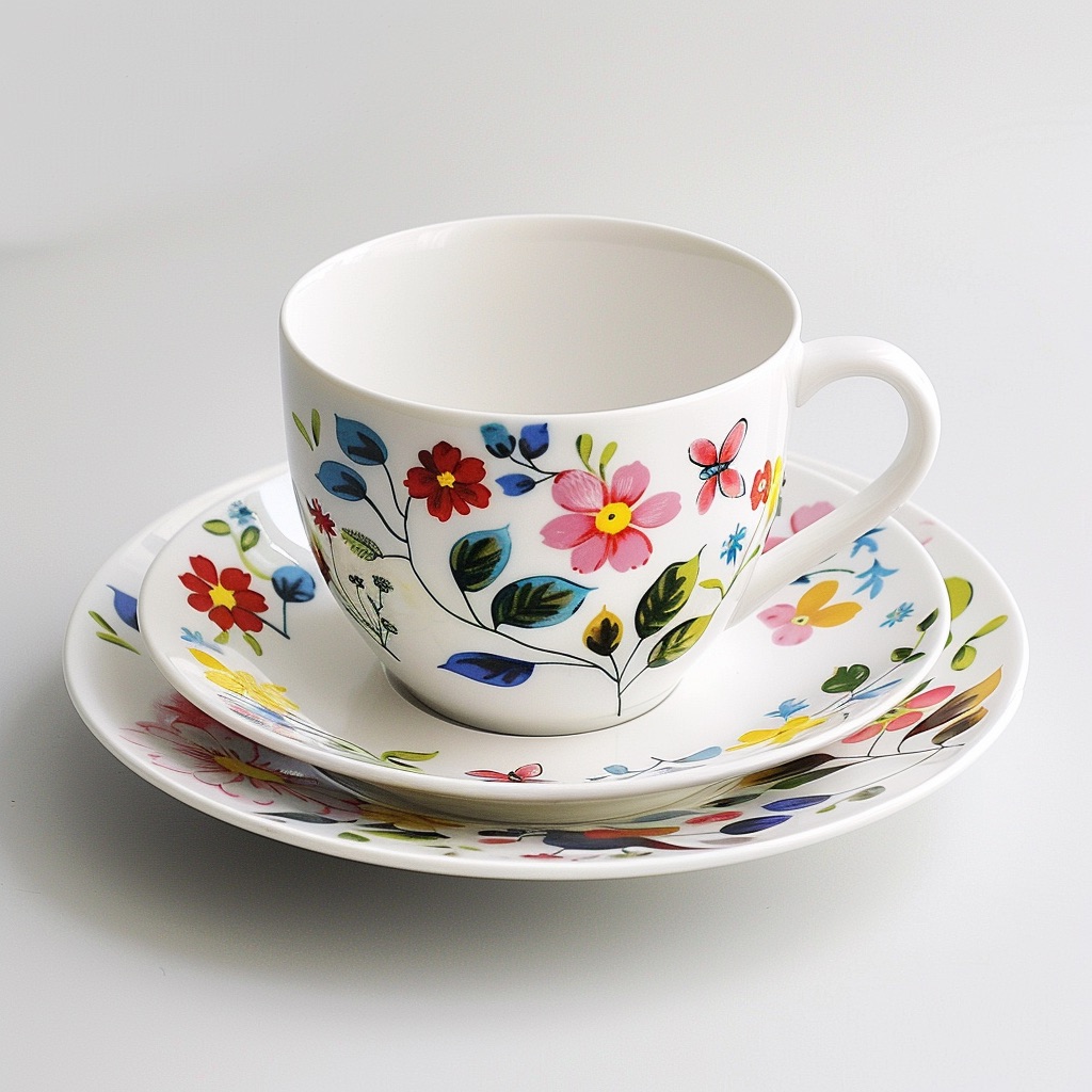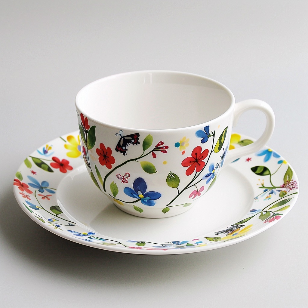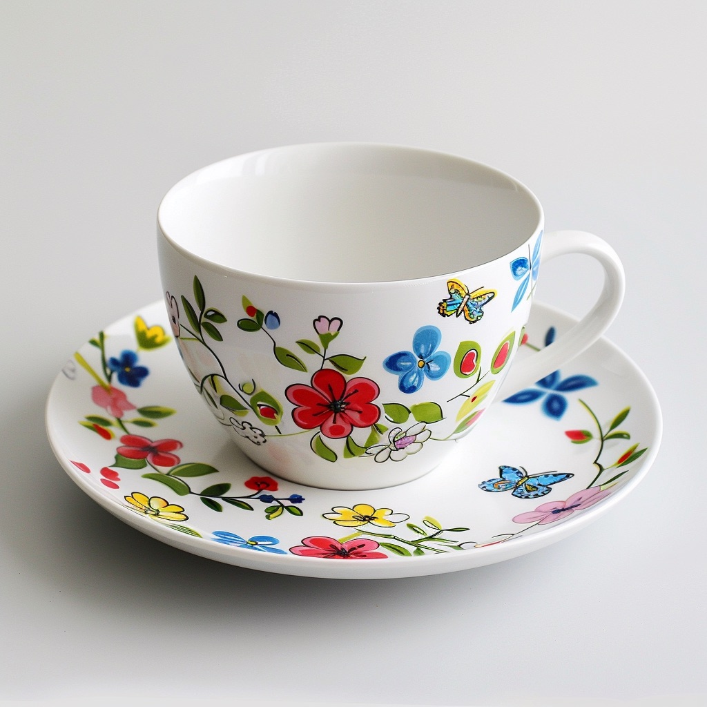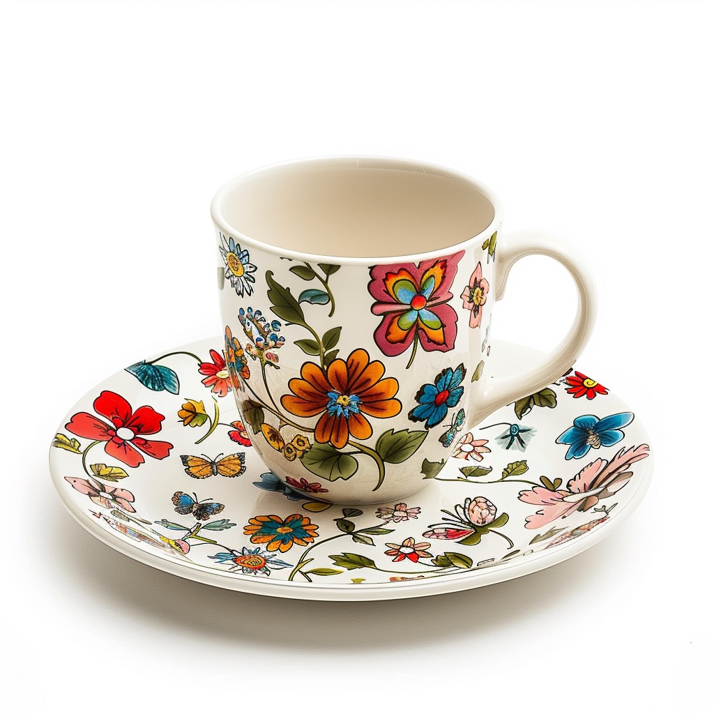 M1002 Porcelain Cups And Saucers With Flowers Pattern