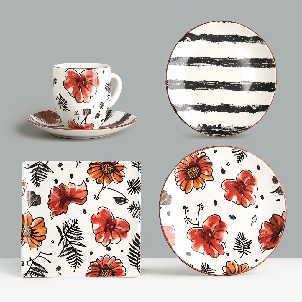MD1001 Porcelain Plates,Cups And Saucers With Fashionable Pattern