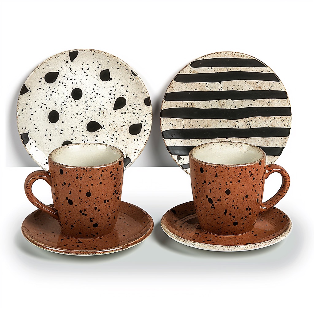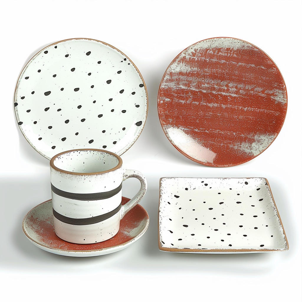 X1004 Porcelain Plates,Cups And Saucers With Dot Pattern