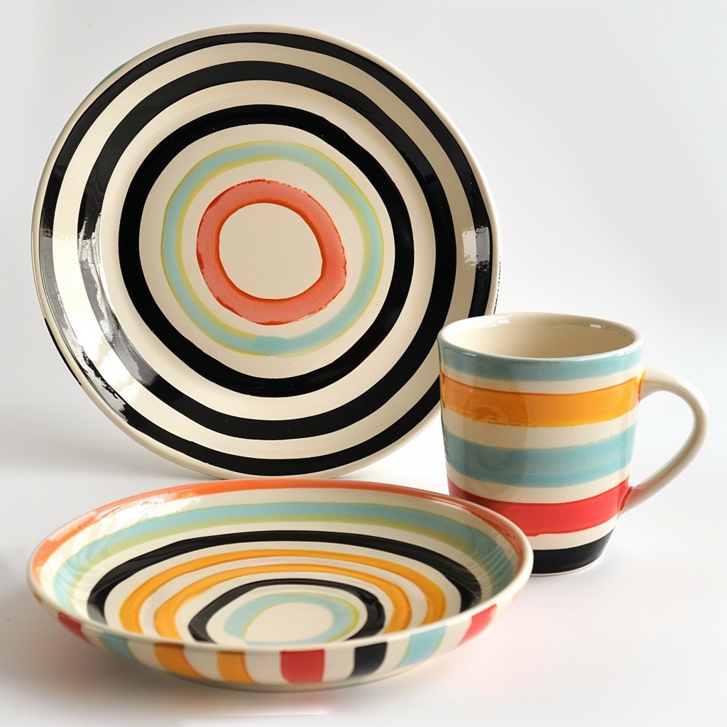 Y1005 Porcelain Plates,Mugs,Cups And Saucers With Line Pattern