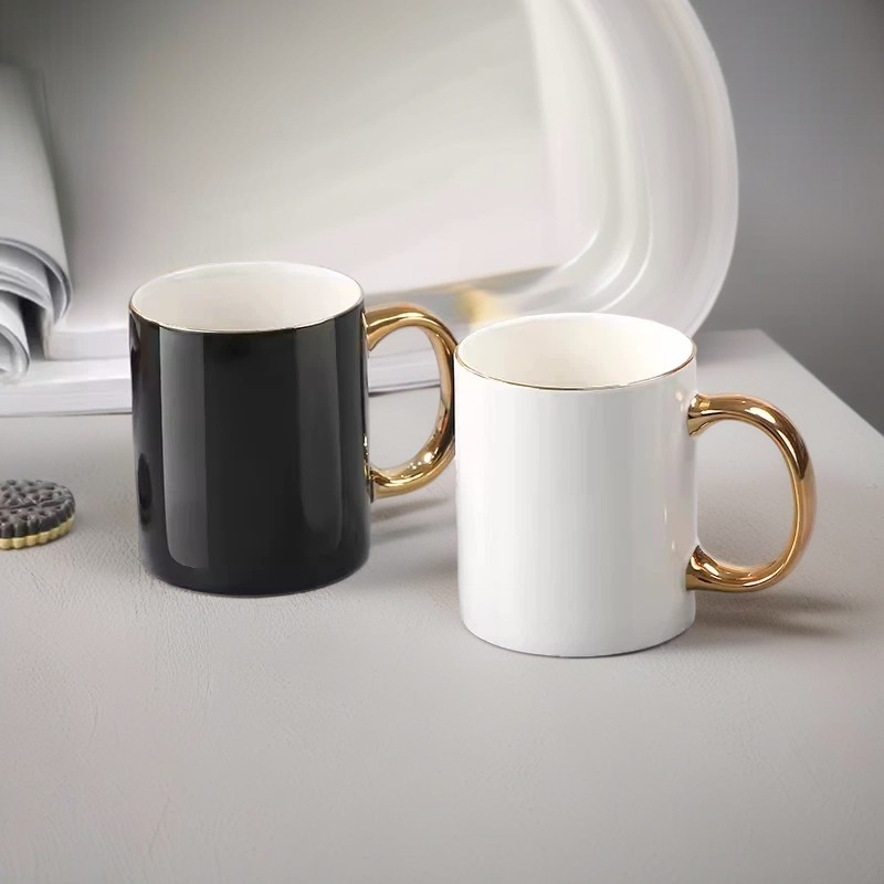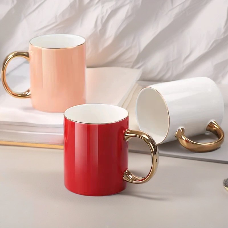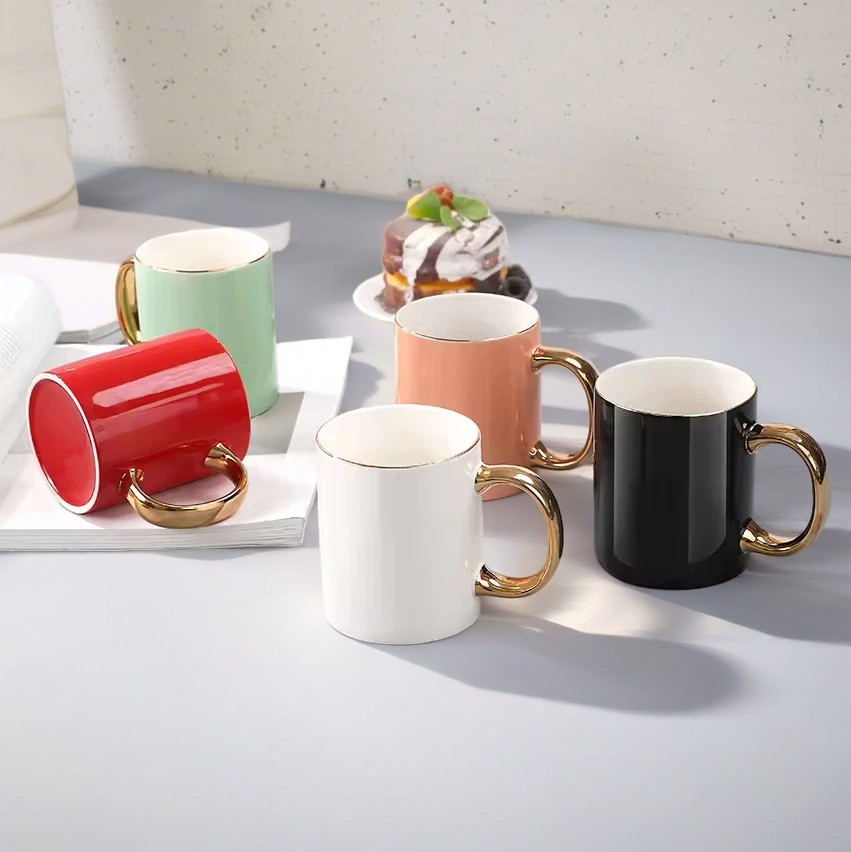 GC1011 New Bone China Straight Mugs With Gold Handle In Reactive Glaze Color