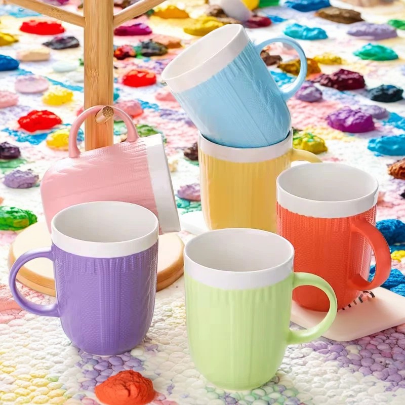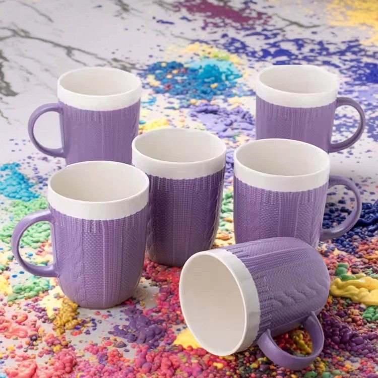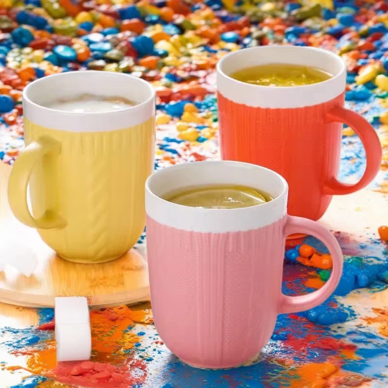 GC1013 New Bone China Mugs With Sweater Texture Emboss Effect In Glaze Color