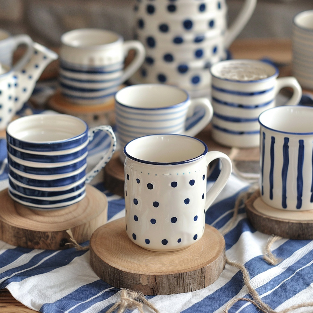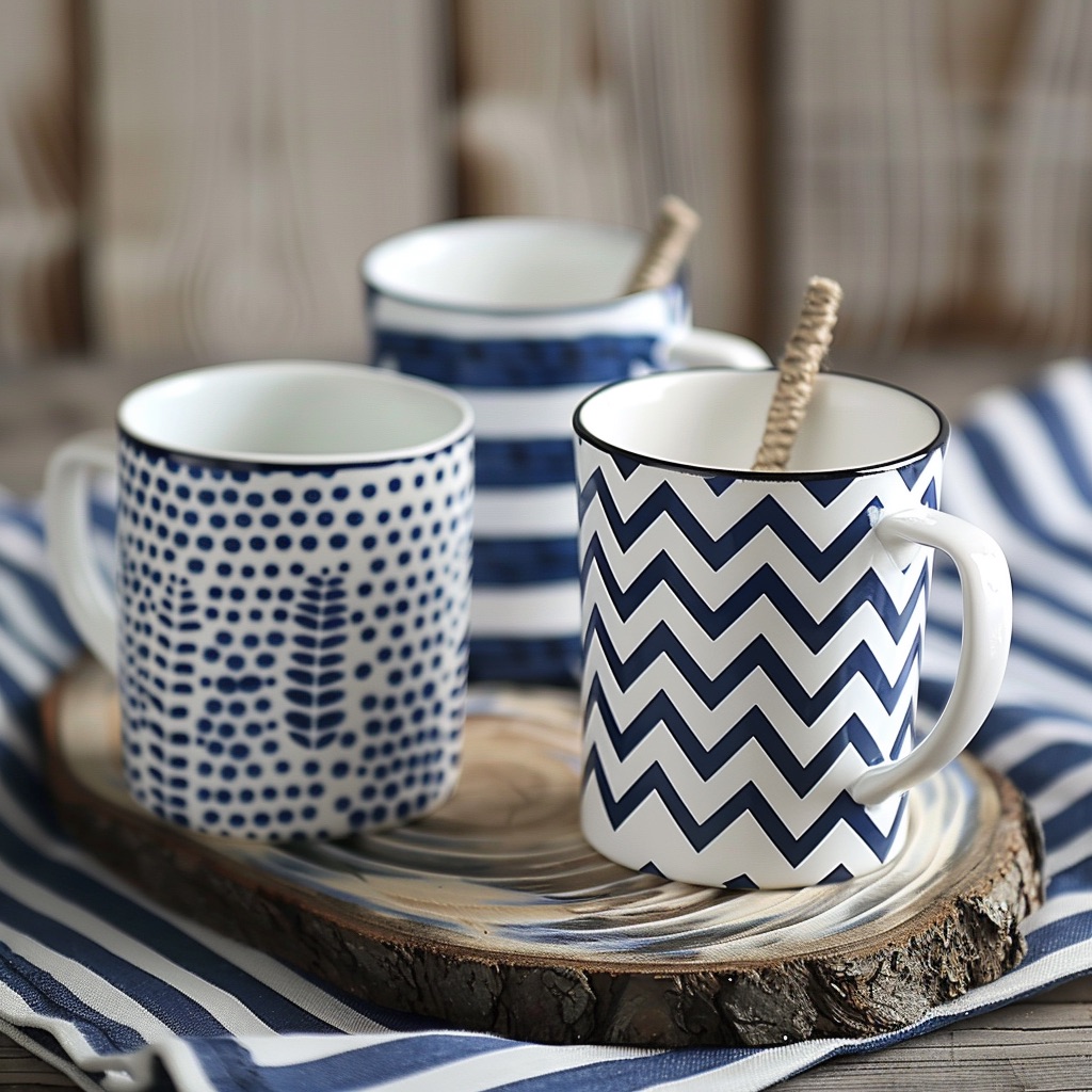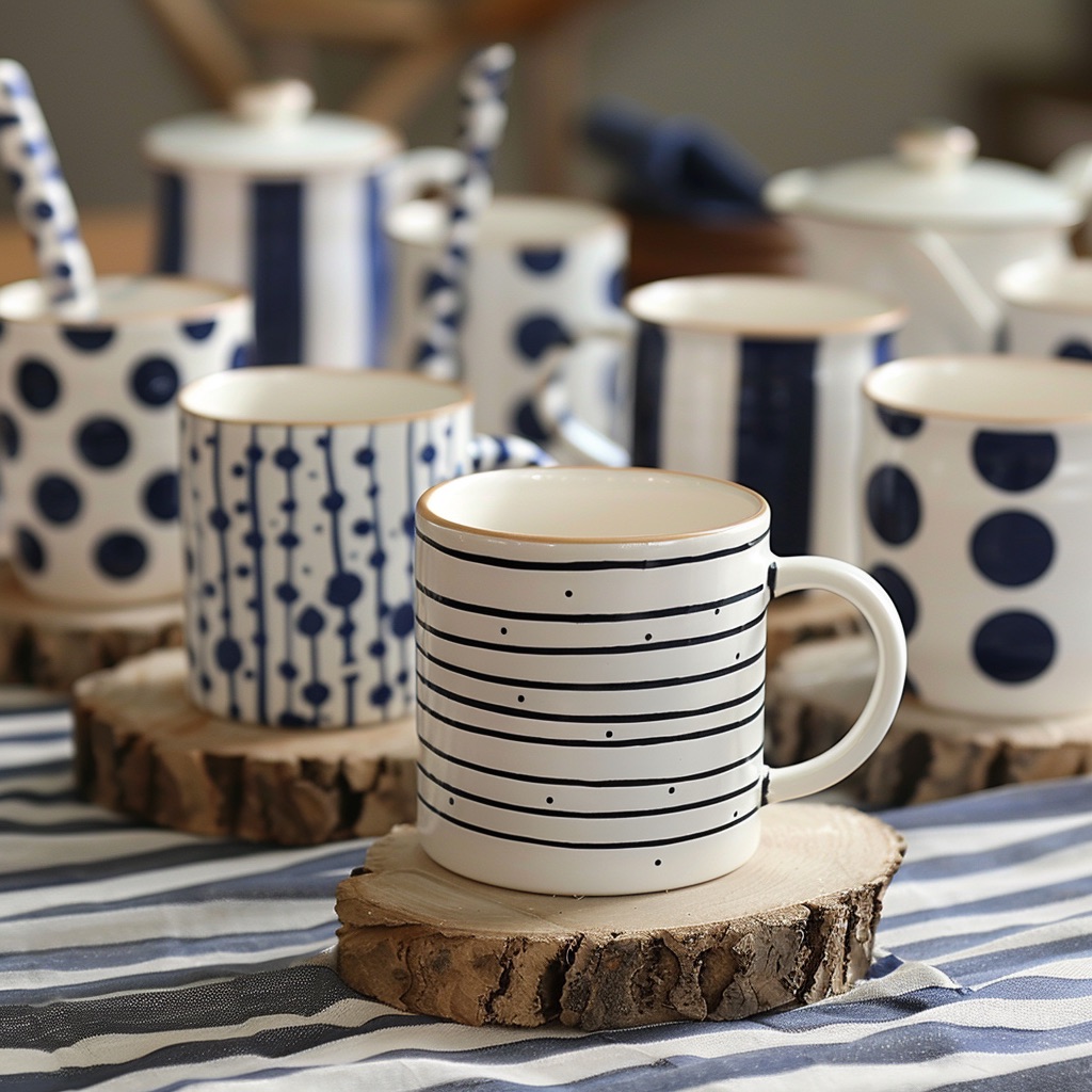 Y1001 Customize Coffee Mug With Line And Dot Pattern