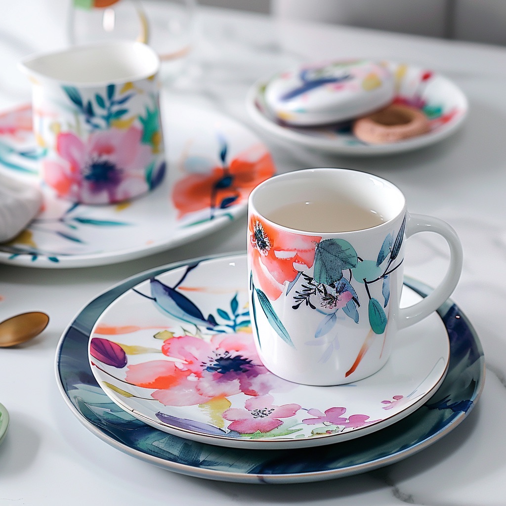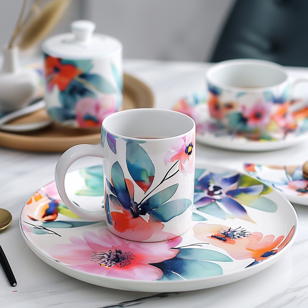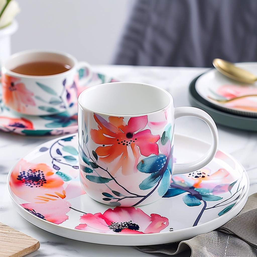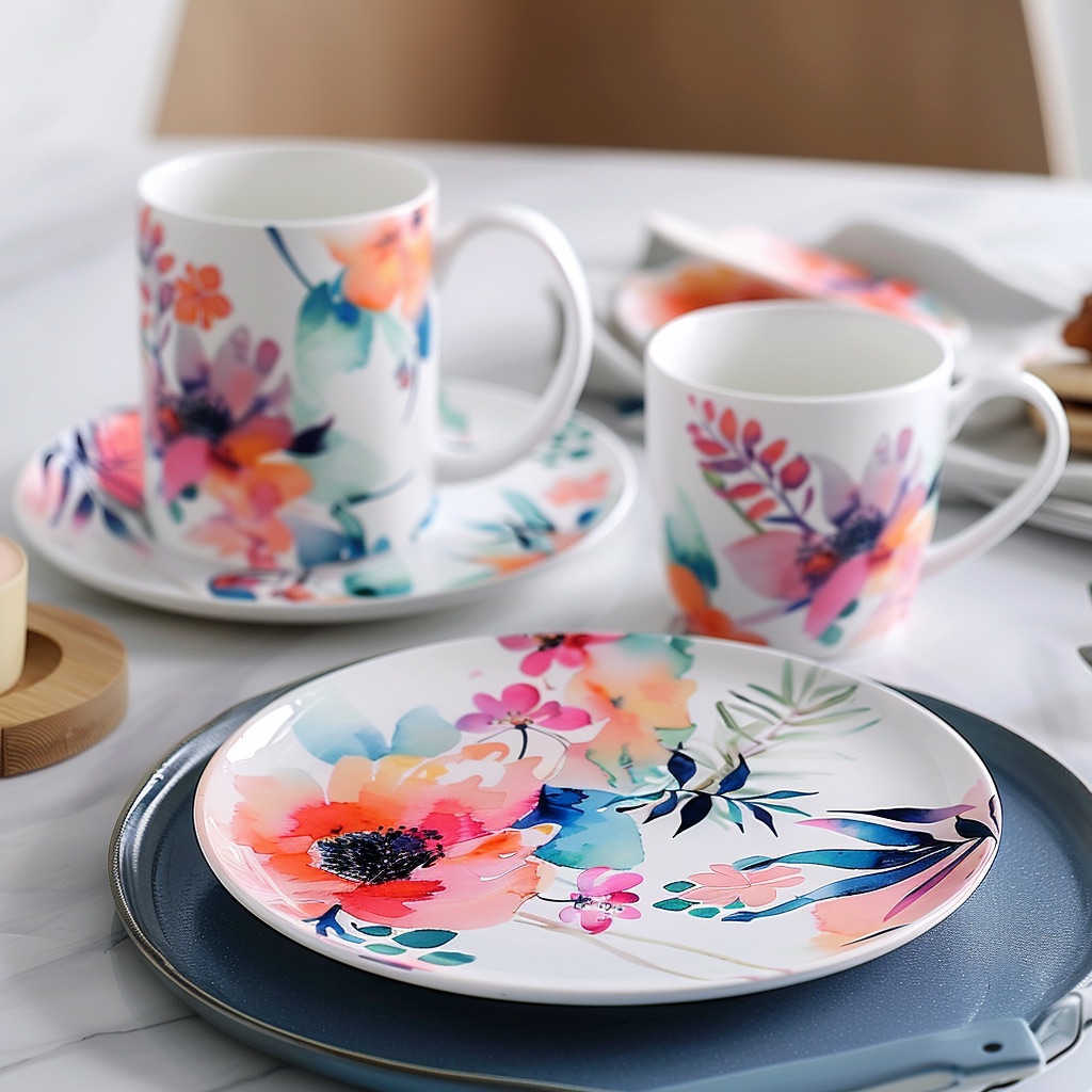 L1001 Porcelain Plates,Mugs,Cups And Saucers With Flowers Pattern