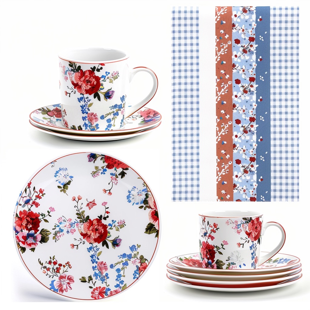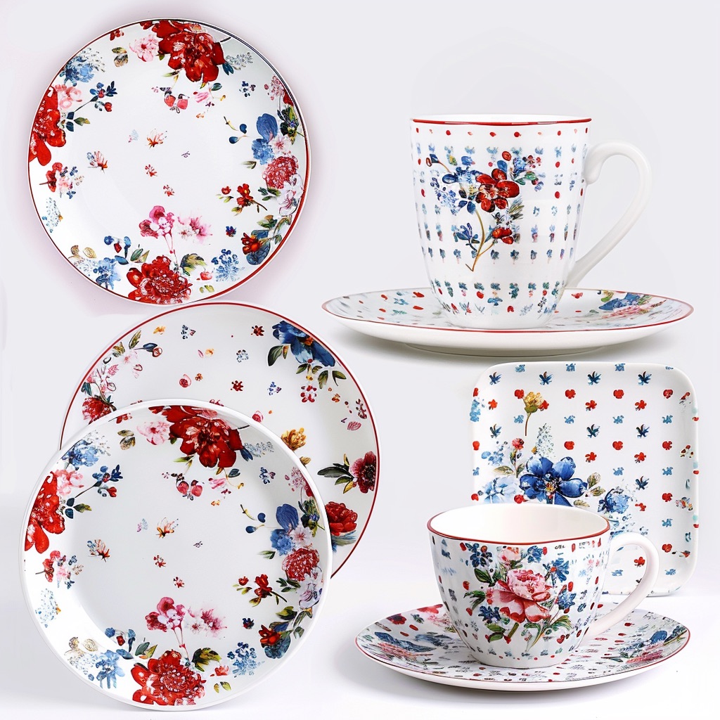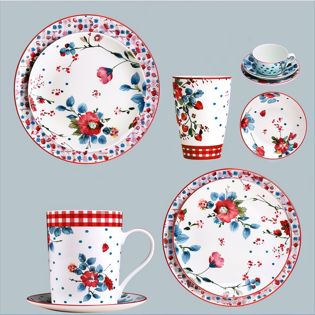K1002 Porcelain Plats,Mugs,Cups And Saucers With Flowers Pattern
