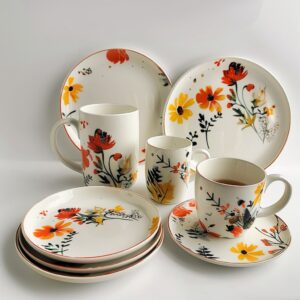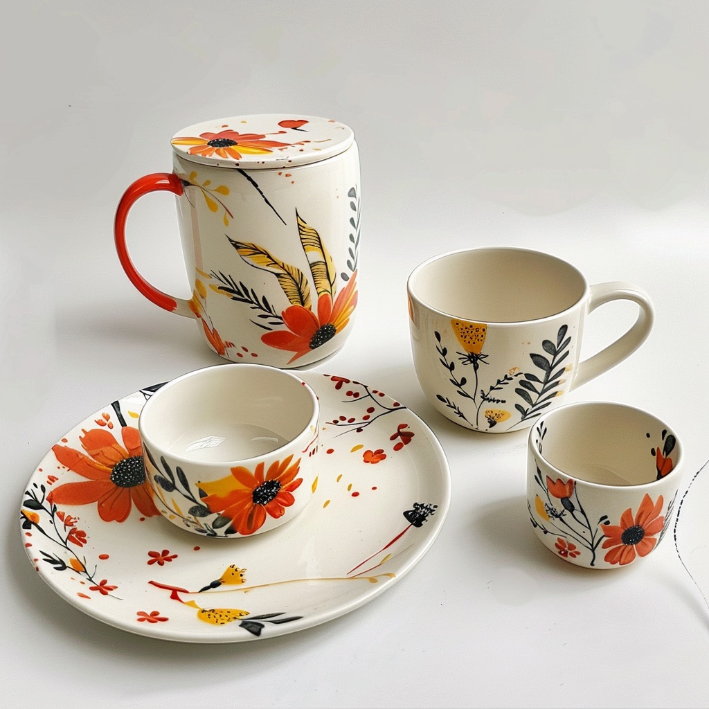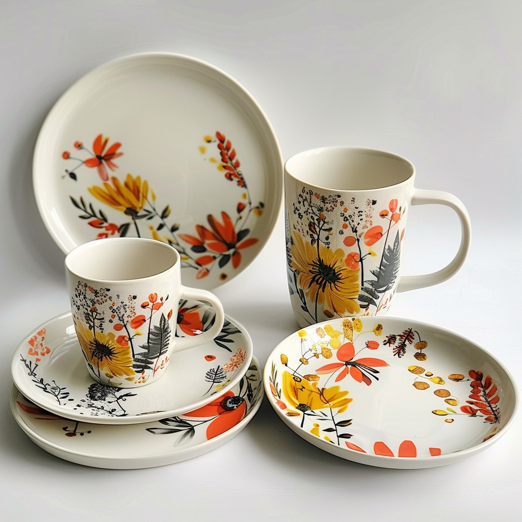 K1009 Porcelain Plates,Mugs,Cups And Saucers With Flowers Pattern